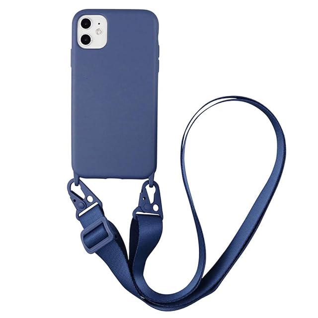 商品名:UnnFiko For iPhone 12 ケース ネックストラップ スマホケース 蛍光色 シリコン アイフォン 12 ケース シンプル ソフト 保護カバー 携帯ストラップ 紐付き 斜めがけ (iPhone 12, Blue)