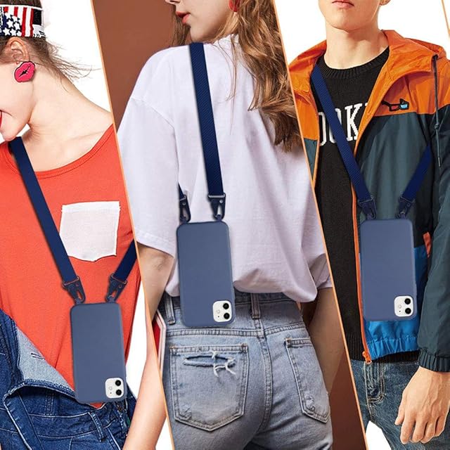 UnnFiko For iPhone 12 ケース ネックストラップ スマホケース 蛍光色 シリコン アイフォン 12 ケース シンプル ソフト 保護カバー 携帯ストラップ 紐付き 斜めがけ (iPhone 12, Blue)