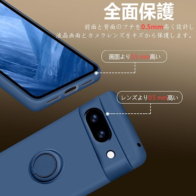 商品名:Google Pixel8a ケース リング付き シリコン 耐衝撃 グーグル ピクセル 8a リング カバー 全面保護 液体シリコーン スマホケース 360°回転 スタンド機能 車載ホルダー ストラップホール付き 滑り止め 落下防止(ブルー)