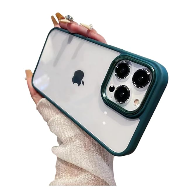 iPhone13Pro 用 ケース クリア 透明 アイフォン13pro カバー 2色 配色 薄型 可愛い レディース 背面カバー ハードケース,深緑