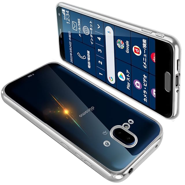 Arrows F-52B ケース クリア カバー 透明 スマホケース 耐衝撃 軽量 メッキ加工 TPU 薄型 ストラップホール付き 滑り止め 落下防止(シルバー)