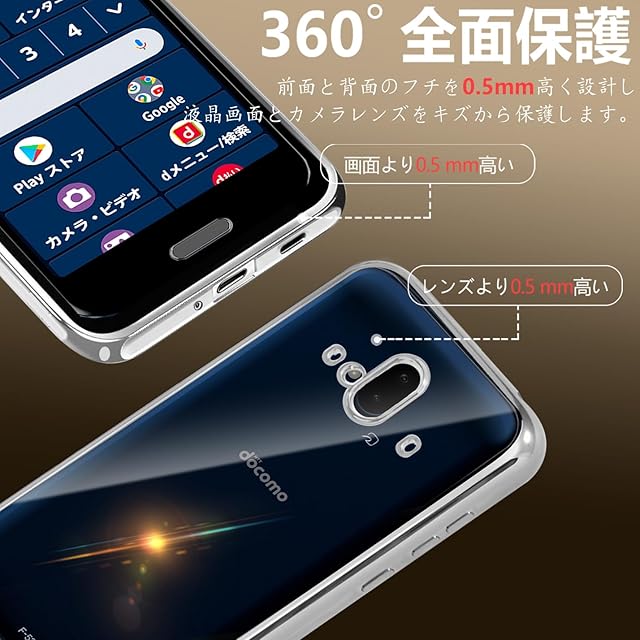 【全面保護】カメラレンズの周りに段差をつけて擦り傷を防ぎます.スマホへの傷つけを防止します.また、カバーの各コーナーを強化し、衝撃を最小限に抑えます。平らな場所に置いても画面やケースの背面がおいた場所に触れることはなく、傷を最小限に抑えることができます。