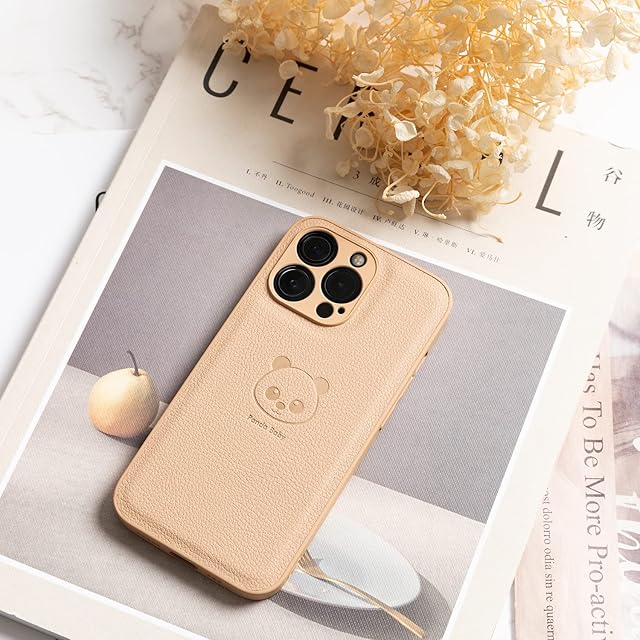 Panda Baby iPhone 15 Pro Max レザーケース 本革に近い質感 (パープル)