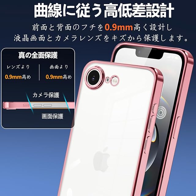 iPhone 16e 用 ケース クリア アイフォン 16e スマホケース 耐衝撃 薄型 米軍MIL規格 tpu カバー 人気(ローズゴールド)
