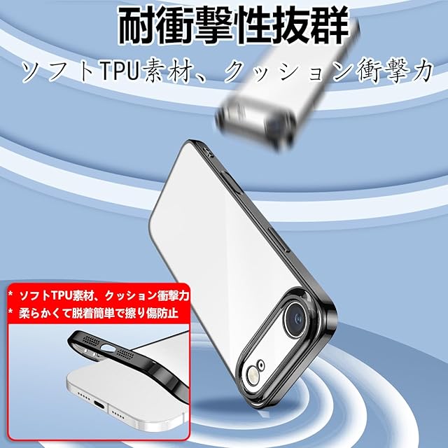 商品名:SATLITOG iPhone Air 用の ケース クリア 耐衝撃 アイフォンAir 用の カバー 透明 スマホケース メッキ加工 完全な保護 黄変防止 落下防止 ファッション 薄型 軽量 TPU 柔らかい ワイヤレス充電 人気 (ブラック)