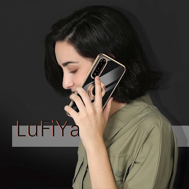 商品名:LuFiYa Sony Xperia 1 V 5G 用 ケース リング付き カバー TPU素材 スタンド機 Xperia 1 V スマホケース 軽量 耐衝撃 薄い 擦り傷防止 落下防止 車載ホルダー 360°回転 ケース Sony Xperia 1 V 5G 対応 (ブラック)