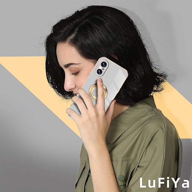 商品名:LuFiYa Sony Xperia 5 V [SO-53D|SOG12] 用 ケース リング付き カバー TPU素材 スタンド機 Xperia 5 V スマホケース 軽量 耐衝撃 薄い 擦り傷防止 落下防止 車載ホルダー 360°回転 ケース Sony Xperia 5 V 対応 (ホワイト)
