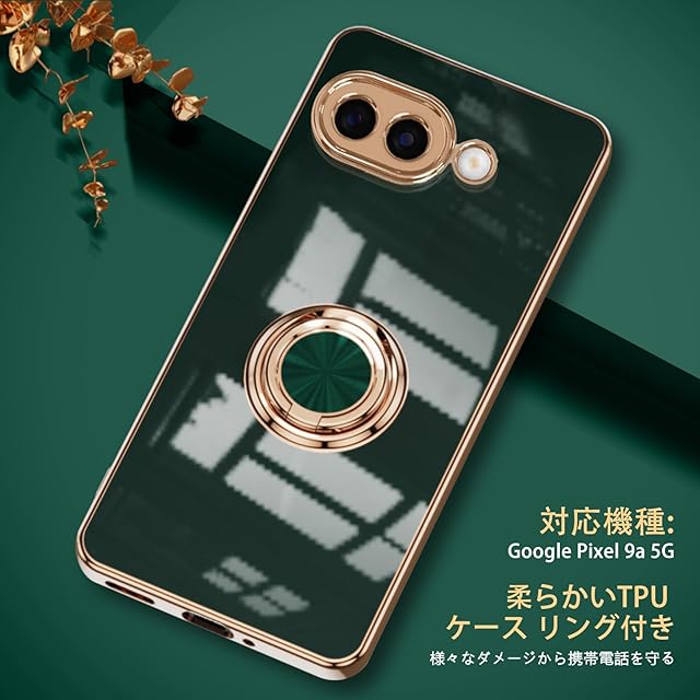 商品名:LuFiYa スマホケース Google Pixel 9a 5G 用 ケース リング付き カバー TPU素材 スタンド機能 スマホケース 軽量 耐衝撃 薄い 擦り傷防止 落下防止 車載ホルダー 360°回転 ケース Google Pixel 9a 5G 用 (グリーン)
