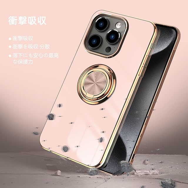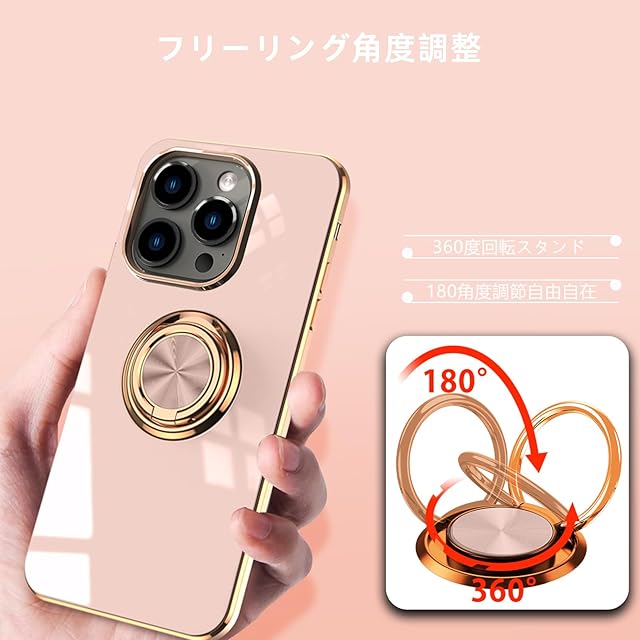 商品名:LuFiYa iPhone 15 Pro (6.1インチ) 用 ケース リング付き カバー TPU素材 スタンド機 アイフォン15 Proスマホケース 軽量 耐衝撃 薄い 擦り傷防止 落下防止 車載ホルダー 360°回転 ケース iPhone 15 Pro 対応 (ピンク)