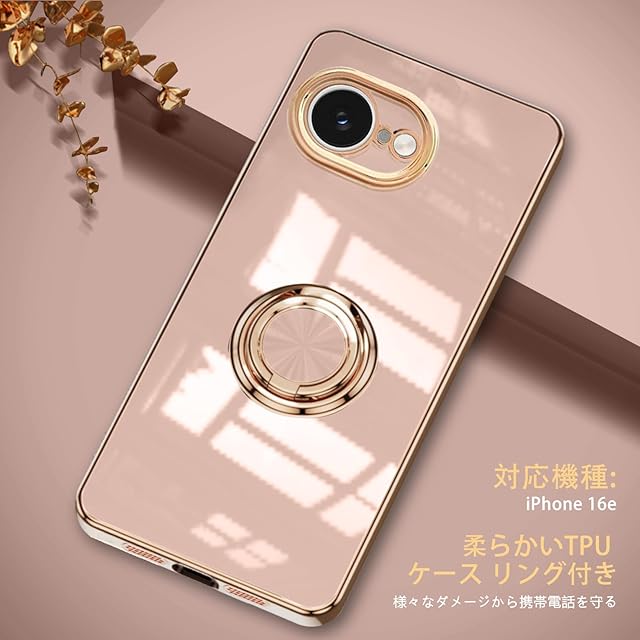 商品名:LuFiYa スマホケース iPhone 16e 用 16e ケース リング付き カバー TPU素材 スタンド機能 軽量 耐衝撃 薄い 擦り傷防止 落下防止 車載ホルダー 360°回転 ケース iPhone SE4 用 (ピンク)