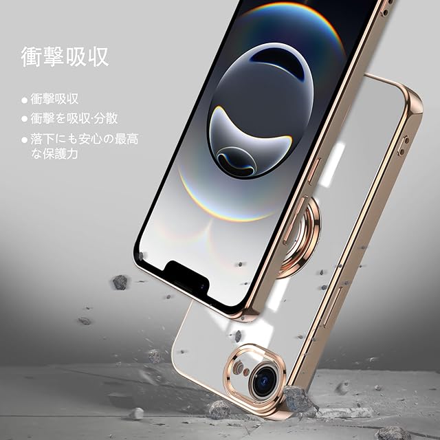 商品名:LuFiYa スマホケース iPhone 16e 用 16e ケース リング付き カバー TPU素材 スタンド機能 軽量 耐衝撃 薄い 擦り傷防止 落下防止 車載ホルダー 360°回転 ケース iPhone SE4 用 (ホワイト)