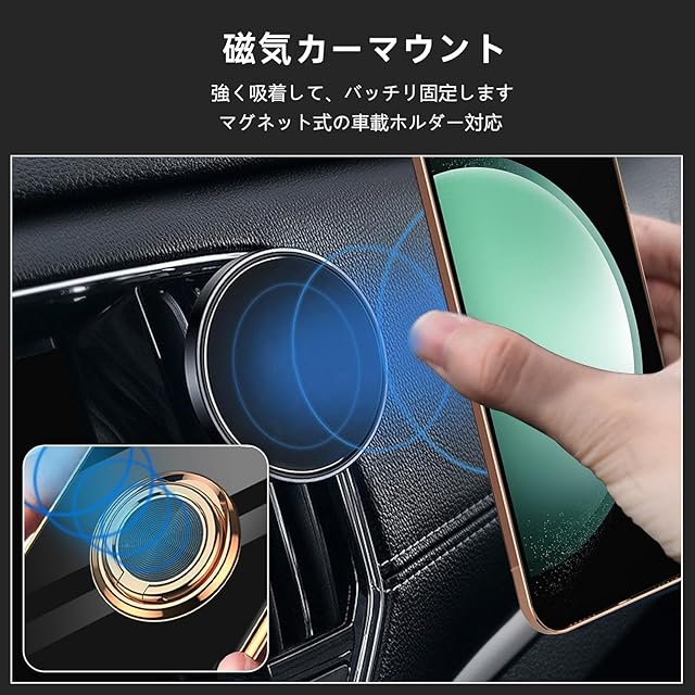 [リング付き&スタンド機能] 360度回転スタンド、180角度調節自由自在に使用可能です。マグネット式車載スマホマウントホルダー に対応でき。ケースを横置きにするとスタンド機能になり、片手で携帯を操作でき、滑り止め、強奪、落下などのことを防げます。いつでもどこでもfacetime、ドラマや映画の鑑賞などの娯楽番組を思い切り楽しめます。