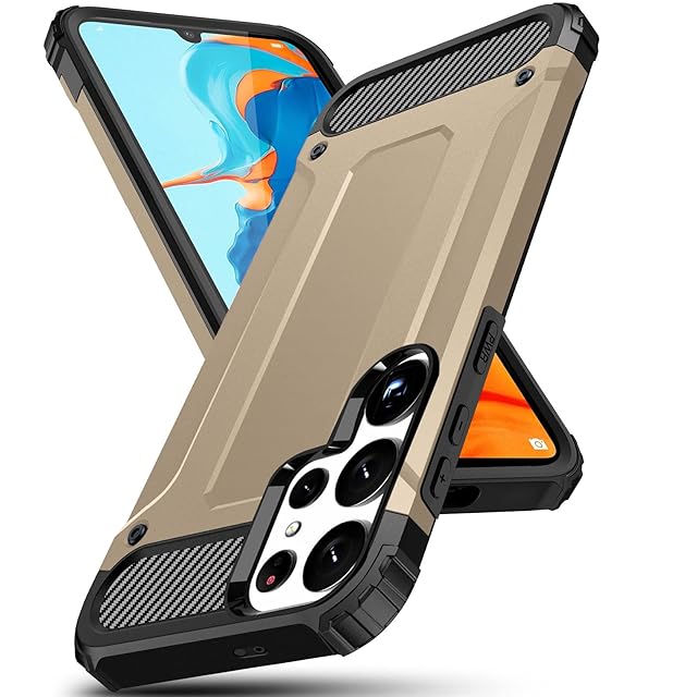 Galaxy S22 Ultra 用 ケース 耐衝撃カバー レンズ保護 PC+TPU 二層構造 SC-52C SCG14 スマホケース 耐久 衝撃吸収 指紋防止 ギャラクシーS22 ウルトラ 用カバー 防塵 薄型 軽量 一体型 手触り良い ワイヤレス充電 擦り傷防止 散熱加工 携帯カバー ゴールデン SJ77-50