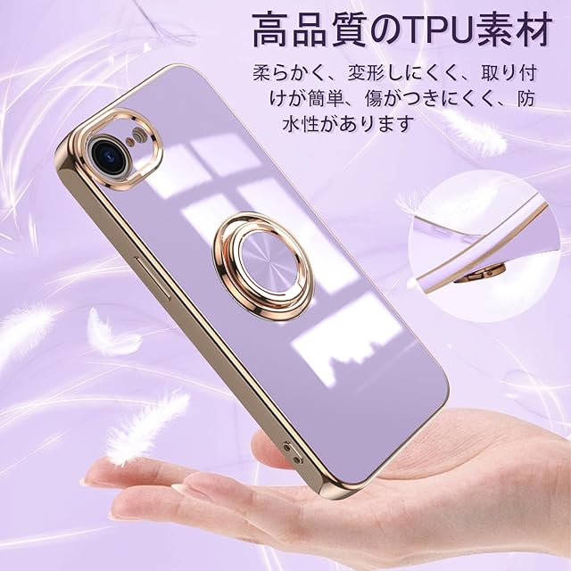 商品名:[ZoRoll] iPhone 16e 対応 ケース リング付き、カバー スマホケース アイフォン 16e TPU シリコン メッキ加工カバー 磁気吸着 軽量 薄型 人気 耐衝撃 タンド機能付き 360回転 車載ホルダー対応 あいふぉん16E 用 カバー (パープル)