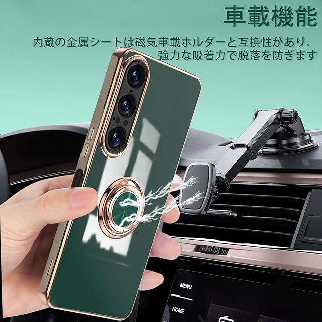商品名:[ZoRoll] Sony Xperia 1 VII 対応 ケース リング付き、スマホケース TPU シリコン メッキ加工カバー 磁気吸着 軽量 薄型 人気 耐衝撃 タンド機能付き 360回転 車載ホルダー対応 ソニー Xperia 1 VII 用 カバー (ダークグリーン)