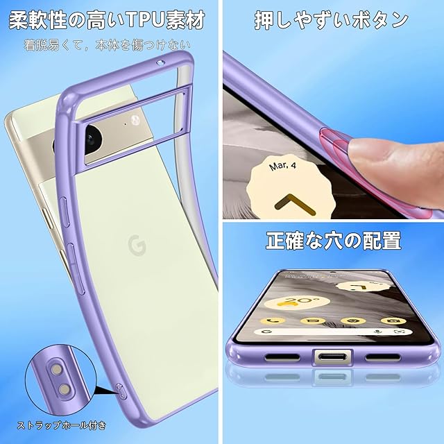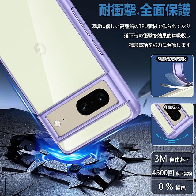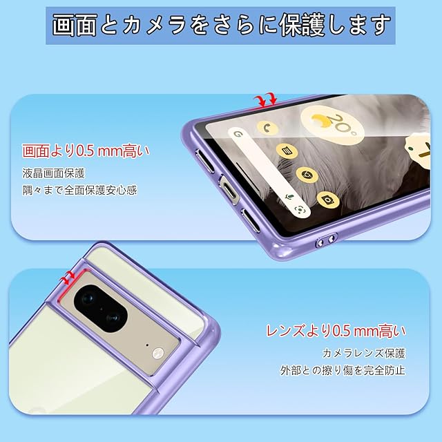 商品名:【Fuleeyuhn】Google Pixel 7 ケース クリア 耐衝撃 黄変防止 耐久性 ピクセル 7 カバー 透明 TPU素材 薄型 軽量 落下防止 擦り傷防止 スマホケース ストラップホール付き ワイヤレス充電対応 グーグル ピクセル 7 携帯ケース 6.4インチ(パープル)