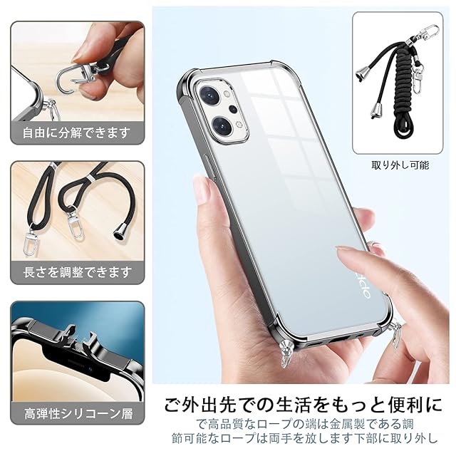 商品名:OPPO Reno9 A ケース クリア ショルダー OPPO Reno7 A ケース オッポ リノ7a 5G スマホケースオッポ リノ9a ケース OPG04 カバー耐衝撃 reno9a reno7aカバー tpu 肩掛け 斜めかけ 首掛け 縄掛け reno9 aカバー reno7 a透明 ック ストラップ付き 斜めがけ 織りストラップ付き 調節可能なショルダー カバー (ブラック)