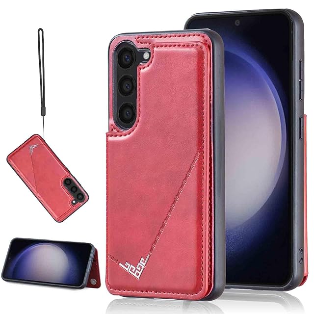 【Aqier】カバー 用 Galaxy S24 / docomo SC-51E / au SCG25 ケースカード (レッド) サムスンscg25 ギャラクシーs24 ドコモsc51e スマホケース 背面カード 収納 軽量 多機能 ケース 手帳型 サムスンS24 RED