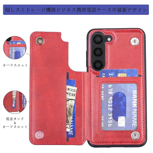商品名:【Aqier】カバー 用 Galaxy S24 / docomo SC-51E / au SCG25 ケースカード (レッド) サムスンscg25 ギャラクシーs24 ドコモsc51e スマホケース 背面カード 収納 軽量 多機能 ケース 手帳型 サムスンS24 RED