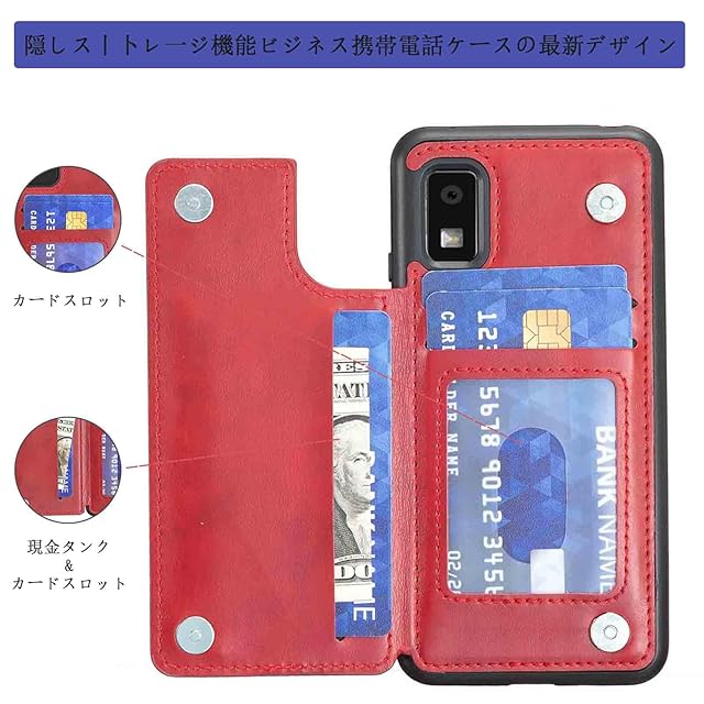 【Aqier】カバー 用 AQUOS sense6s / docomo SH-54B SH-RM19 SH-M19 / au SHG05 SHG07 ケースカード (レッド) シャープ アクオス センス6s ドコモsh54b shrm19 shm19 スマホケース 背面カード 収納 軽量 多機能 ケース 手帳型 sense6 RED