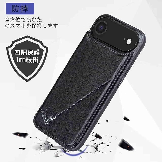 商品名:【Aqier】カバー 用 iPhone Air/17Air 6.5 inch ケースカード (ブラック)アイフォン エアー 6.5インチ スマホケース 背面カード 収納 軽量 多機能 ケース 手帳型 アイフォンair BLACK