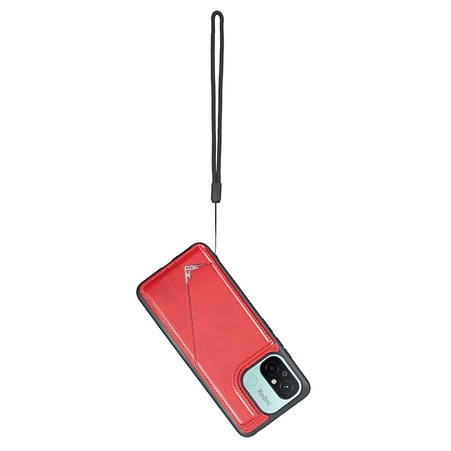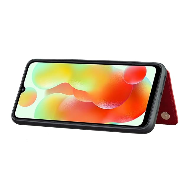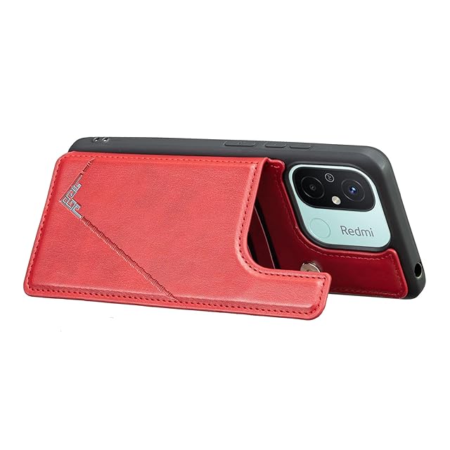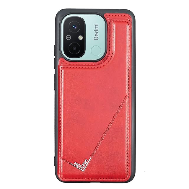 【Aqier】カバー 用 Redmi 12C mineo ケースカード (レッド) ミー12c mi12c スマホケース 背面カード 収納 軽量 多機能 ケース 手帳型 mi12c RED