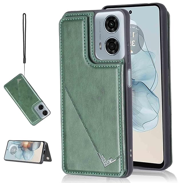 【Aqier】カバー 用 Moto G24 / G04 ケースカード(ダルグリーン)モトローラ モト g24/g04 スマホケース 背面カード 収納 軽量 多機能 ケース 手帳型 モトg24 GREEN