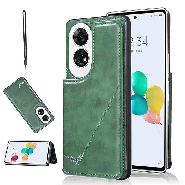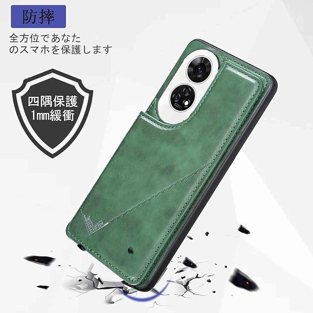 【Aqier】カバー 用 ZTE Anshin Family A303ZT ケースカード (ダルグリーン)zte リベロ a303zt スマホケース 背面カード 収納 軽量 多機能 ケース 手帳型 zte a303zt GREEN