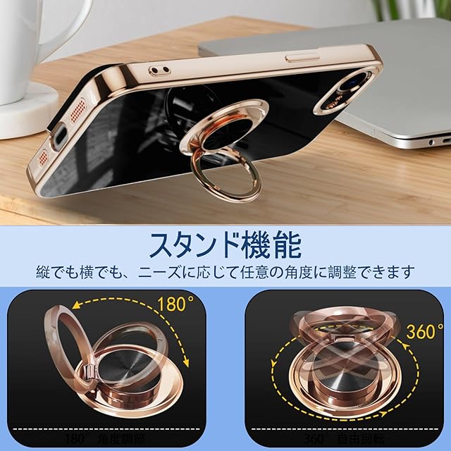 商品名:[ZoRoll] iPhone 16e 対応 ケース リング付き、カバー スマホケース アイフォン 16e TPU シリコン メッキ加工カバー 磁気吸着 軽量 薄型 人気 耐衝撃 タンド機能付き 360回転 車載ホルダー対応 あいふぉん16E 用 カバー (ブラック)