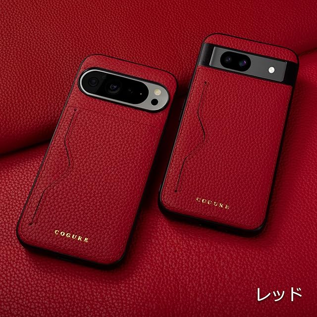 商品名:COGURE コグレ Google Pixel 9 / 9 Pro ケース 本革 シュリンクカーフレザー カード入れ 耐衝撃 シンプル おしゃれ ギフトボックス付き COPC1-pi レッド