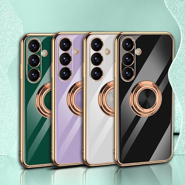 商品名:[ZoRoll] Samsung Galaxy S23 FE 対応 ケース リング付き、カバー スマホケース Galaxy S23 FE TPU シリコン メッキ加工カバー、磁気吸着 軽量 薄型 人気 耐衝撃 タンド機能付き 360回転 車載ホルダー対応 サムスン ギャラクシーS23 FE 用 カバー (ダークグリーン)