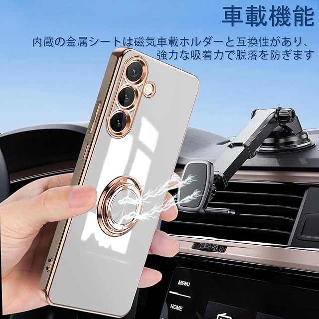 商品名:[ZoRoll] Samsung Galaxy S25 Plus 対応 ケース リング付き、カバー スマホケース Galaxy S25+ TPU シリコン メッキ加工カバー、磁気吸着 軽量 薄型 人気 耐衝撃 タンド機能付き 360回転 車載ホルダー対応 サムスン ギャラクシーS25+ 用 カバー (ホワイト)