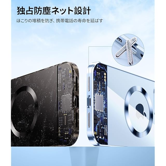 商品名:【本体の色・チタニウム金属五色】iPhone 13 用 ケース MagSafe充電対応 一体型レンズ保護 人気 韓国 クリア 耐衝撃 米軍MIL規格 耐久性 SGS認証 カバー ストラップホール付き アイフォン13用 カバー 6.1 インチ ケース(ブルー)