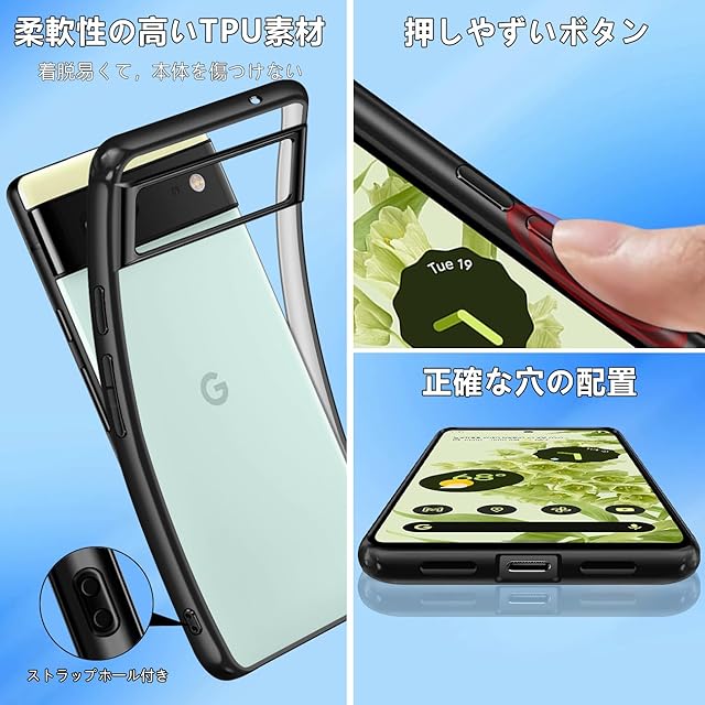 商品名:【Fuleeyuhn】Google Pixel 6 ケース クリア 耐衝撃 黄変防止 耐久性 ピクセル 6 カバー 透明 TPU素材 薄型 軽量 落下防止 擦り傷防止 スマホケース ストラップホール付き ワイヤレス充電対応 グーグル ピクセル 6 携帯ケース 6.4インチ(ブラック)