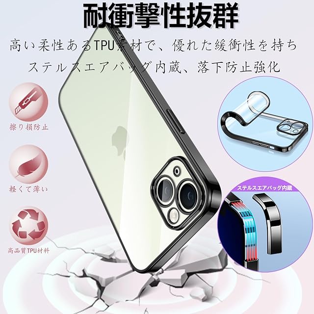 商品名:Montue iPhone 15 Plus 用 ケース クリア 耐衝撃 米軍MIL規格 可愛い 韓国 薄型 軽量 スマホケース アイフォン15 Plus 用 カバー ワイヤレス充電対応 (ブラック)