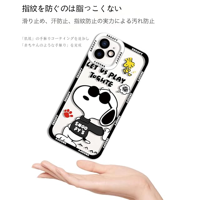 商品名:Mlxgnana スヌーピー iPhone13mini用 スマホケース クリア TPU 耐衝撃(すり傷/落下防止) 黄変・指紋防止 レンズ保護 Qi対応 ソフト軽量 人気 可愛い 携帯カバー (黒い服, iPhone13mini)