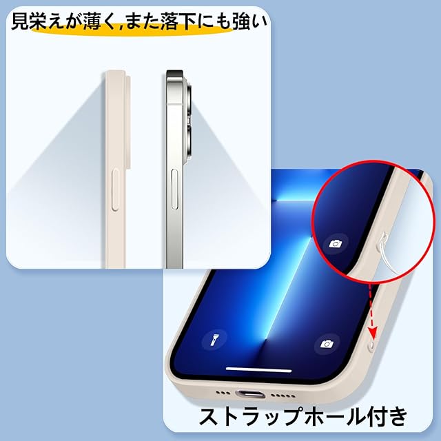商品名:iPhone 13 Pro Max ケース シリコン 耐衝撃 アイフォン13 Pro Max カバー 液体シリコン ファッション 米軍MIL規格 ポータブル 薄型 軽量 ストラップホール付き マット感 人気 指紋防止 レンズ保護 ソフト ワイヤレス充電対応 6.7インチ対応(ホワイト)