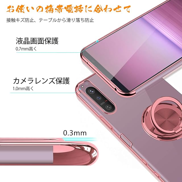 商品名:Xperia 5 II ケース SO-52A カバー リング クリア TPU 耐衝撃 透明 メッキ加工 SOG02 スマホケース 一体型 スタンド機能 車載ホルダー ストラップホール Sony エクスペリア5II ケース ローズゴールド