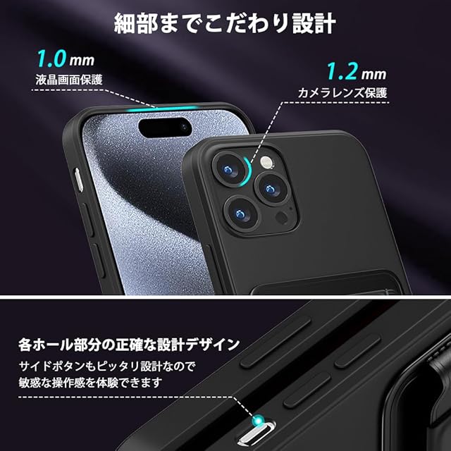 商品名:対応 iPhone 15 pro 用 ケース カード収納 スタンド付き アイフォン 15 Pro シリコン 携帯 ケース バンド付き スタンド機能 耐久 滑り止め 黑