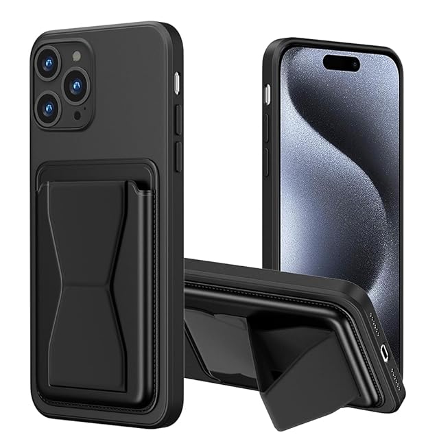 対応 iPhone 15 pro 用 ケース カード収納 スタンド付き アイフォン 15 Pro シリコン 携帯 ケース バンド付き スタンド機能 耐久 滑り止め 黑