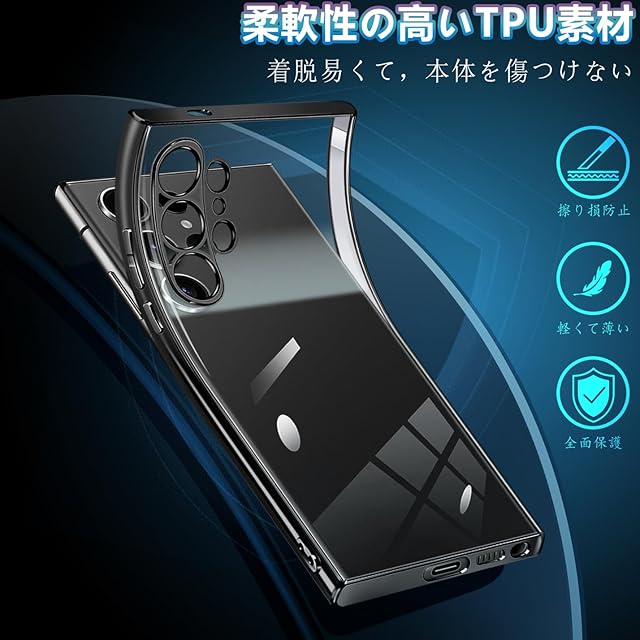 商品名:Galaxy S24 Ultra ケース クリア TPU 薄型 軽量 ギャラクシーS24Ultra 耐衝撃 米軍MIL規格取得 滑り止め 黄変防止 防塵 人気 携帯カバー ワイヤレス充電対応 (ブラック)