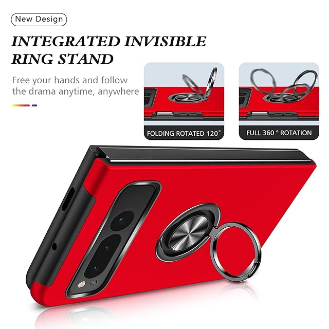 商品名:Google Pixel Fold 用ケース リング付き 耐衝撃 tpu pc 二重構造 全面保護 一体型スマホケース グーグル ピクセル Fold 用ケース 衝撃吸収 シリコン 360°回転 スタンド機能 軽量 薄型 車載ホルダー対応 米軍MIL規格 指紋防止 人気 携帯カバー 赤 ZW75-96