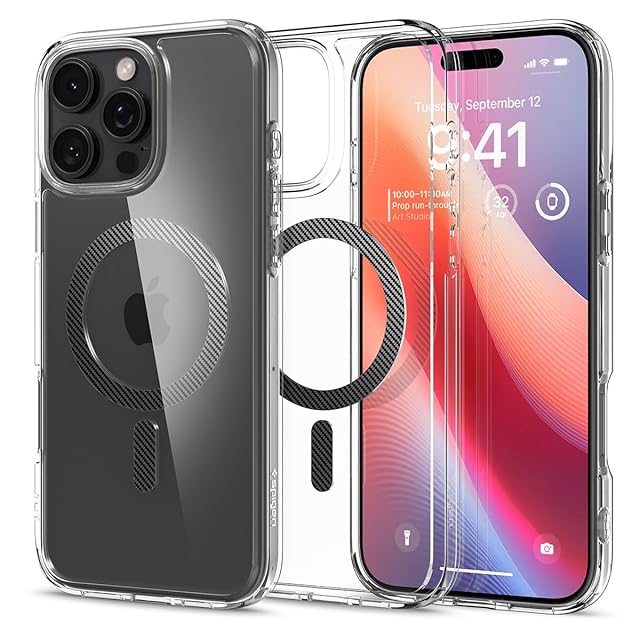 Spigen iPhone 16 Pro Max ケース MagSafe対応 クリア 透明 ストラップホール 米軍MIL規格 ウルトラ・ハイブリッド・マグフィット ACS08000 (カーボン・ファイバー)