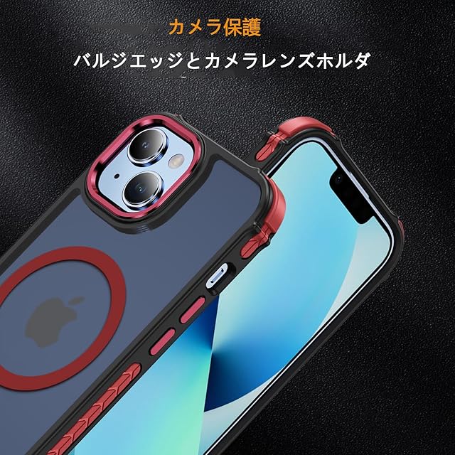 商品名:iphone 14 ケース スマホカバー マット半透明 マグネット搭載 ワイヤレス充電 耐衝撃 指紋防止 滑り止め 米軍MIL規格・Magsafe対応 アイフォン 14用カバー インチ PinLiSheng (レッド, iphone 14)