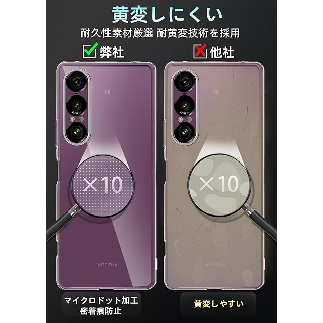 <b>【90日】</b><br> 商品日より90日間の安心付き。ご購入した製品に万が一不具合や気になる点がございましたら弊社までご連絡ください。<br> <b>ご連絡の方法:</b>アカウントサービス内の「アカウントサービス」→「注文履歴」→「販売元」→「質問する」から、お気軽にお問合せ下さい。<br><br> <b>パッケージ内容:</b> <br> Xperia 1 VII 透明TPUケース * 1<br> <b>製品の特徴</b><br> <b>1. スマホ本体を持っている手触り心地</b><br> 高級の材料、専門的なデザインを採用し、最善の手触り心地を確保できる。<br><br> <b>2. 全面的に保護する</b><br> 360度であなたの装置を全面的、死角のないと保護できる。私たちの核心価値と競争力だ。<br><br> <b>3. 指紋防止、油っぽくない</b><br> より良い手触り心地といい体験を獲得するため、ハイエンドの材料で作った。百点の努力をしてただ手触り心地だけを求めている。<br><br> <b>4. 軽く、薄く、柔らかい</b><br> 極薄いデザインを採用し、保護性を下げない、これは私たちの努力の方向だ。<br><br> <b>5. 落下防止</b><br> 装置のコーナーは衝撃を受けやすい場所で、保護性を増加するため、保護カバーの四つのコーナーに強化、専門的なデザインを採用した。<br><br> <b>6. 独立のボタンデザイン</b><br> ボタン部位のデザインについてボタンを保護するほか、ボタン使用の手触り心地も重視し、大方で保護性もあり、シングルで美感もある。<br><br> <b>7. 真実の展示</b><br> ぴったりと貼り合せ、装置と一体化している。 <br><br> <b>8. 色落ちない</b><br> 保護カバーは特殊の色落ちない材料を採用し、に変色しなく、黄色くなく、持久の美しさを保つことができる。<br><br>