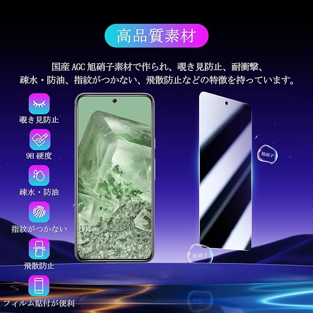商品名:対応 Google Pixel 8 フイルム 覗き見防止【2枚セットAGC旭硝子 】 pixel8 ガラスフイルム のぞき見防止 ピクセル8 プライバシーフィルム 強化ガラス さらさら ケース 【 日本旭硝子素材採用 硬度9H 耐衝撃 飛散防止 超薄 厚さ0.26mm 気泡ゼロ 3D Touch対応 高感度 撥油性 指紋防止 超耐久 ラウンドエッジ加工 】