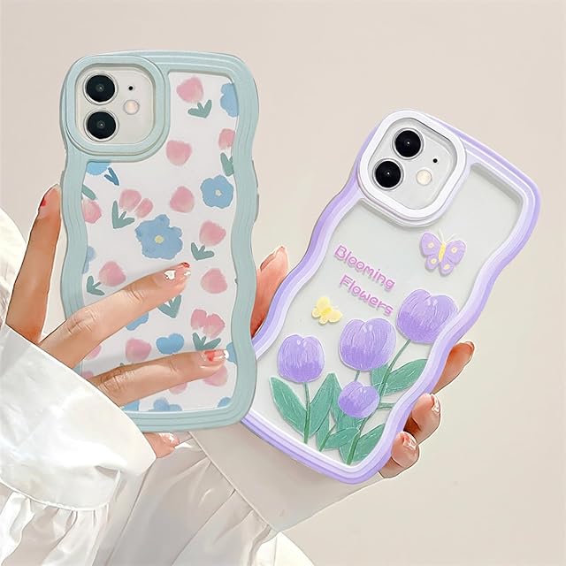 UEEBAI 対応 iPhone 11 6.1 inch 用の ケース ソフト TPU カバー 可愛い おしゃれケース 透明 ウェーブ デザイン スマホケース ワイヤレス充電対応 軽量 薄型 耐衝撃 人気 波型 バンパー スマホケース - パープル・フラワー