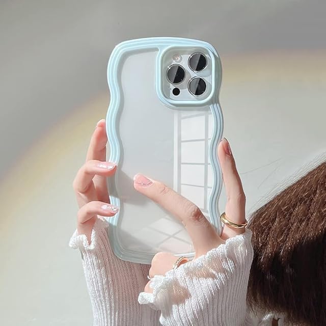 UEEBAI 対応 iPhone 14 Pro Max 用の ケース ソフト TPU カバー 可愛い おしゃれケース 透明 ウェーブ デザイン スマホケース ワイヤレス充電対応 軽量 薄型 耐衝撃 人気 波型 バンパー スマホケース - ペールブルー