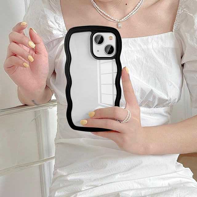 UEEBAI 対応 iPhone 15 用の ケース ソフト TPU カバー 可愛い おしゃれケース 透明 ウェーブ デザイン スマホケース ワイヤレス充電対応 軽量 薄型 耐衝撃 人気 波型 バンパー スマホケース - ブラック