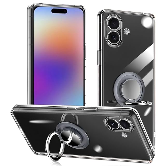 商品名:対応 iPhone 17 ケース リング付き 透明 アイフォン17 スマホケース リング クリア シリコン 薄型 スタンド機能 耐久 滑り止め(クリア)
